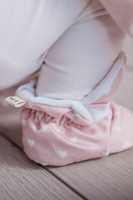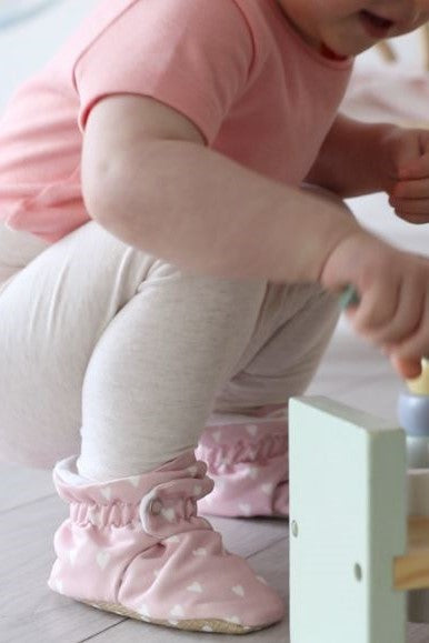Our booties feature a supersoft breathable organic cotton lining and a soft cotton outer to make them extra cosy.