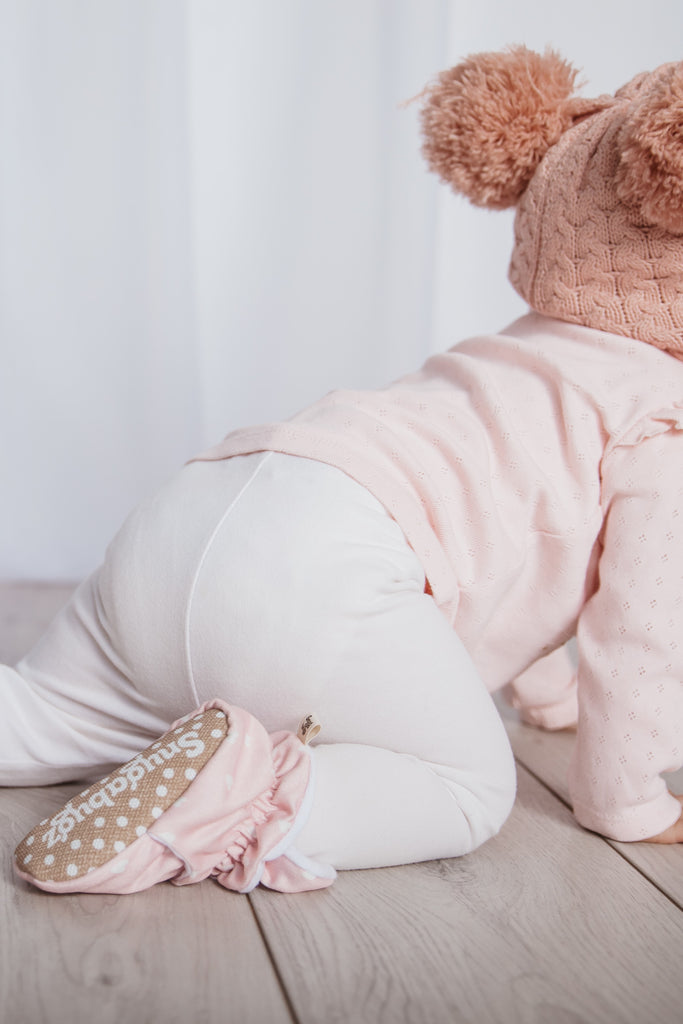 Keep your baby snug as a bug in our clever little booties specially designed to stay on little feet. No more lost baby socks or cold feet!