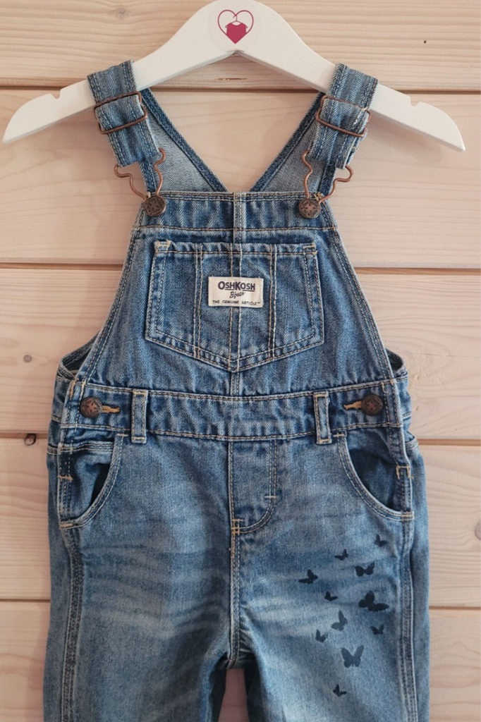- These OshKosh B'Gosh denim overalls offer a classic and stylish look for your little one. Crafted with quality denim, they provide a comfortable fit that is perfect for everyday wear. The charming butterfly print adds a playful touch, enhancing its appeal. Designed with adjustable straps and multiple pockets, these overalls ensure functionality and style are always at hand. Ideal for various activities, they can be paired easily with t-shirts or sweaters for a versatile look. Available in size 3T, these blue overalls are a must-have for any child's wardrobe.