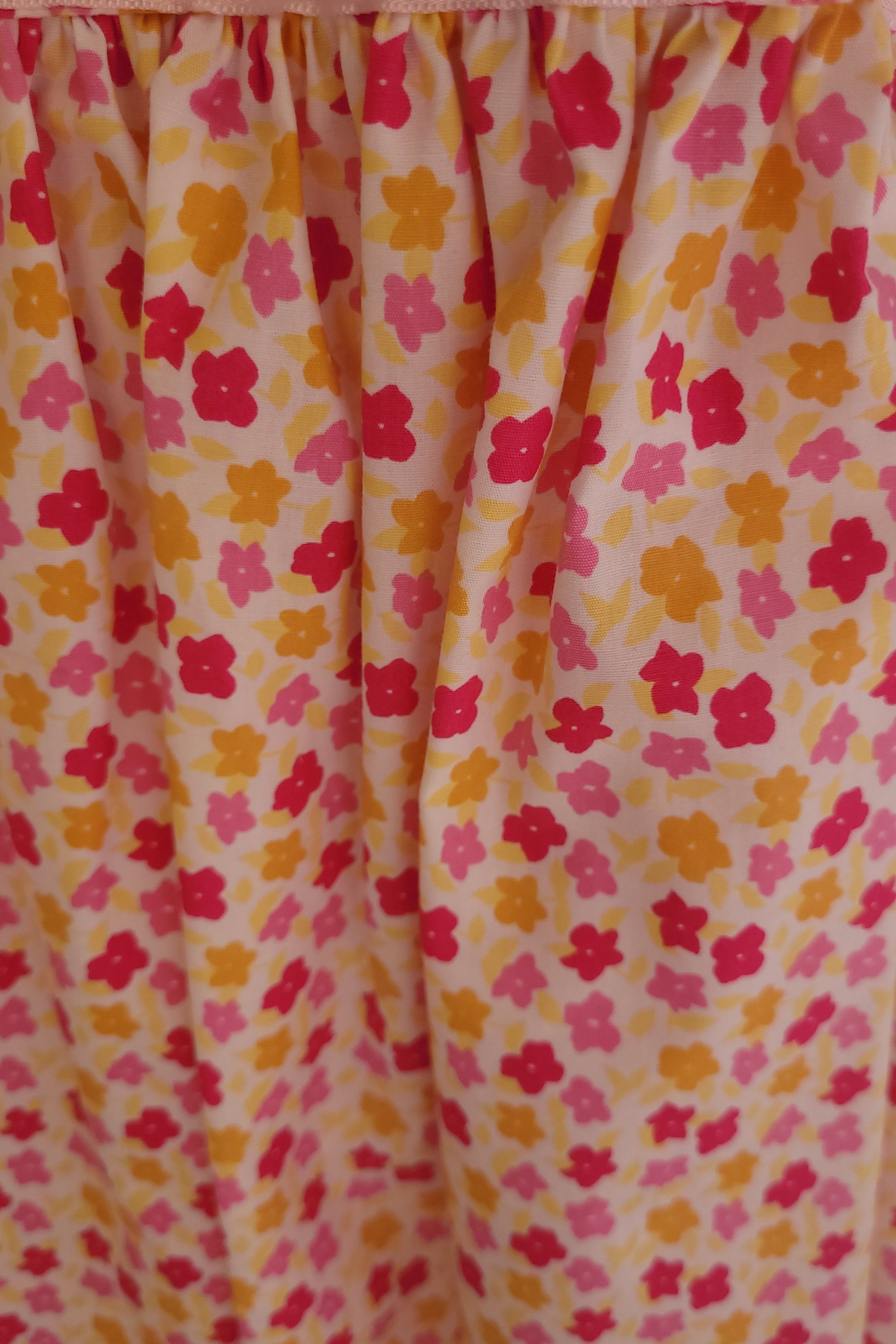 Pink & Yellow Floral Patterned fabric/White & and ribbon tie.